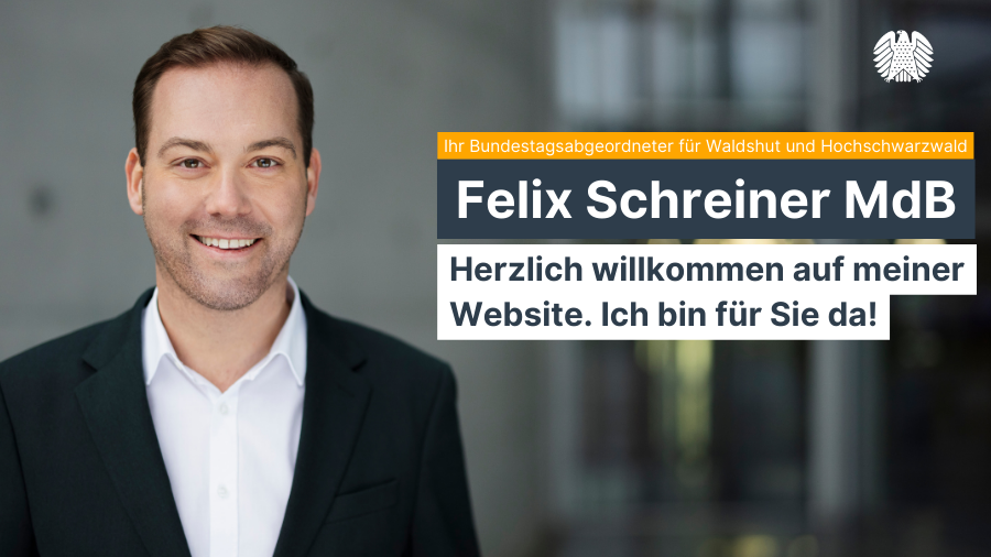 1986 in Waldshut geboren und in Lauchringen aufgewachsen, gehört Felix Schreiner immer noch zu einem der jüngsten Abgeordneten der CDU/CSU-Bundestagsfraktion. Schon in seiner Schulzeit engagierte er sich Kommunalpolitik und der evangelischen Kirchengemeinde ehrenamtlich und packte im elterlichen Einzelhandelsbetrieb fleißig mit an. Nach mehreren Begegnungen mit dem früheren Bundestagsabgeordneten Werner Dörflinger trat Felix Schreiner in die Junge Union ein. Es folgten verschiedene Stationen in der Jugendorganisation und später innerhalb der CDU. Der Kommunalpolitik ist Felix Schreiner immer treu geblieben: Er engagiert sich nach wie vor als Kreisrat des Landkreises Waldshut, als Gemeinderat seiner Heimatgemeinde Lauchringen und als Mitglied im Regionalverband Hochrhein-Bodensee. Seit vielen Jahren ist Felix Schreiner ehrenamtlicher Präsident des Blasmusikverbandes Hochrhein und zudem Aufsichtsrat beim Caritasverband Hochrhein. Auf nachfolgendem Link erfahren Sie mehr über die Person und das Leben von Felix Schreiner.